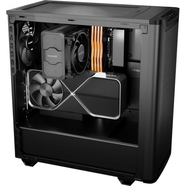 Несмотря на компактные размеры, Pure Base 501 Airflow обеспечивает достаточно места для high-end видеокарт и габаритных кулеров. Во фронтальной части можно установить три вентилятора или радиатор до 360 мм, в то время как в верхней части поместятся до 2 вентиляторов или радиатор 240 мм.