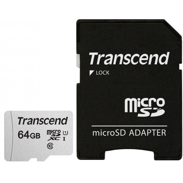 Transcend 64GB MicroSD 300S U1 Class10+SD adapter